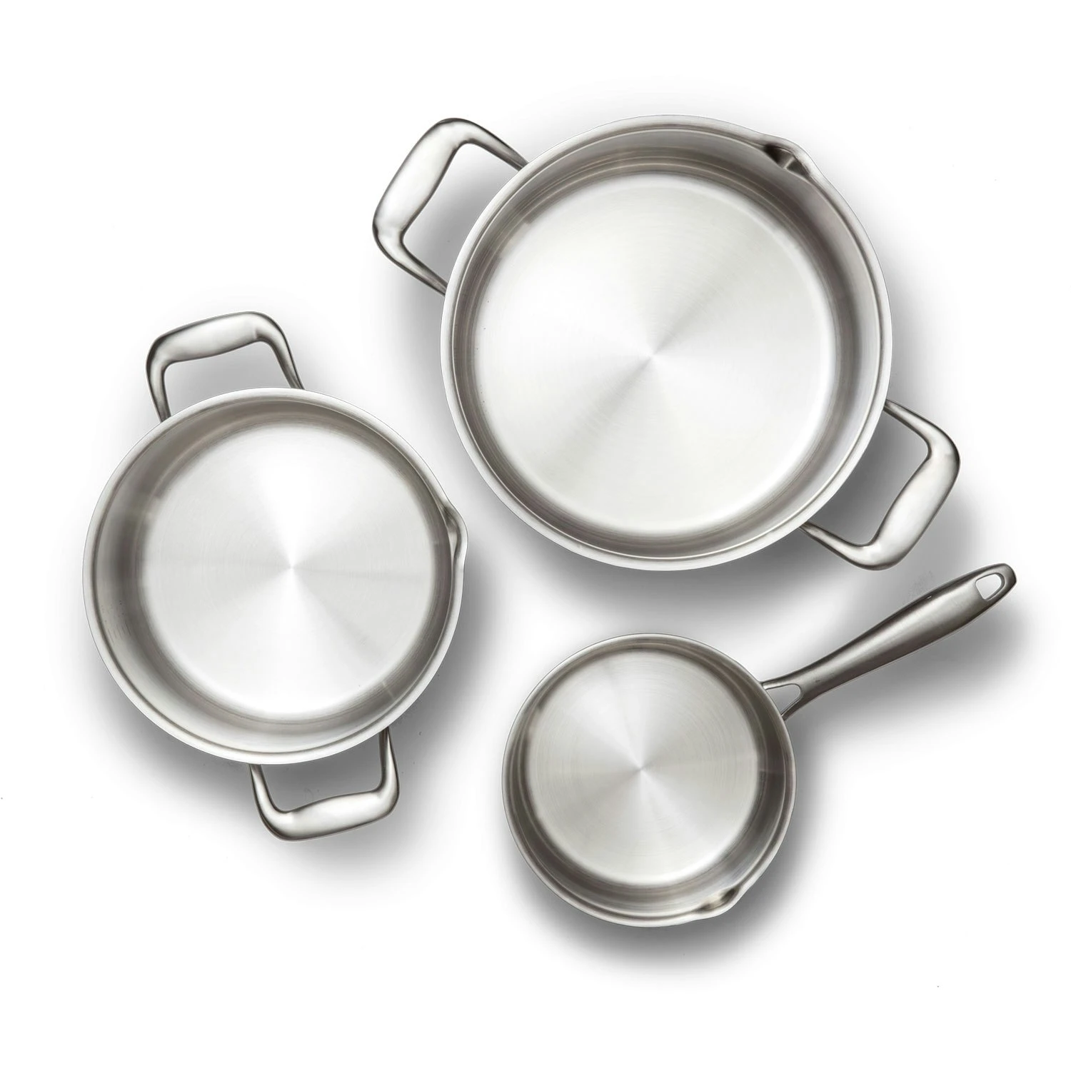 Complete pot set from EGO i stainless Norwegian design, approved by the Norwegian national chef team. The pots are made of several layers of aluminium and stainless steel to provide even and fast heating.